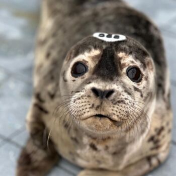 Small but mighty! Summer is learning to eat fish and will soon be ready to move into a pool with other seals.