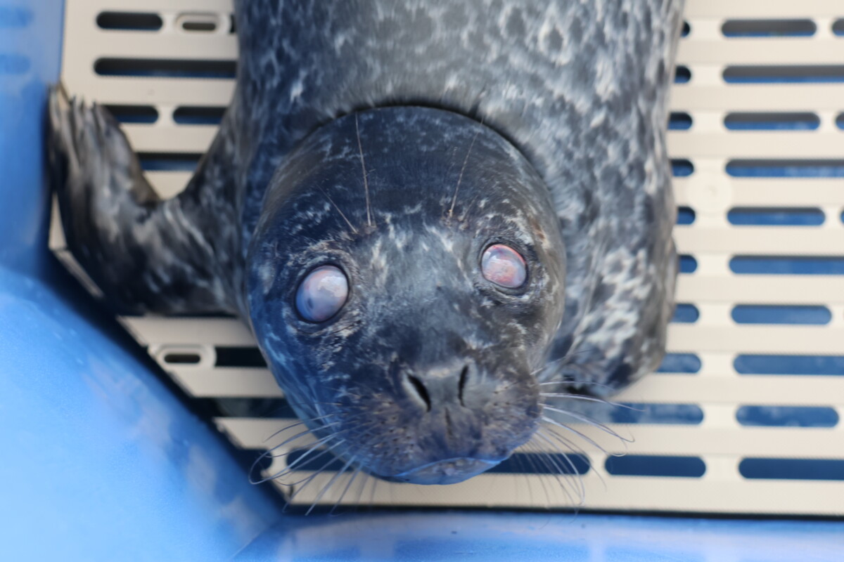 "Training" Pool Crinkle has demonstrated that she is confident eating fish on her own. She has been moved to a small pool that fits up to 3 animals where she can learn how to compete for fish with other harbour seals. She will move to a larger pool once she is confident enough.